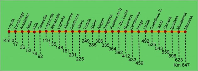 Las etapas del camino y mucha información sobre su filosofía y orígenes aparecen publicadas en caminoignaciano.org, de donde rescatamos el siguiente croquis: